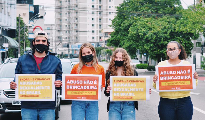 O mês de maio é marcado pela campanha Maio Laranja, que luta contra a violência e exploração sexual de crianças e adolescentes. No domingo (30), a Secretaria de Educação de Balneário Camboriú, em conjunto com jovens voluntários do município, promoveu uma ação alusiva com cartazes contra violência infantil nos principais semáforos da cidade.